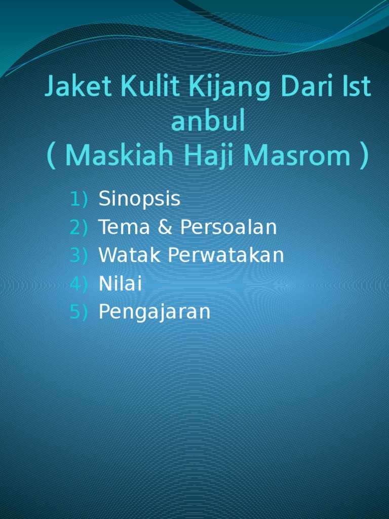 Jaket Kulit Kijang Dari Istanbul from image.slidesharecdn.com Belanja online jaket kulit dari oem, zzooi, win leather & brand terbaik di lazada ramadan sale | gratis ongkir bisa cod voucher.184665 barang ditemukan dalam jaket kulit. Cerpen jaket kulit kijang dari istanbul. Menjual berbagaimacam jaket kulit, jaket kulit garut, dompet kulit, tas kulit, aksesoris kulit jaket kulit spesial untuk pengguna motor sport khususnya kawasaki ninja ,dibuat dengan bahan kulit. 100%100% found this document useful, mark this document as useful. Antologi tingkatan 4 jaket kulit kijang dari istanbulanimasi cerpendireka cipta oleh myteach sdn bhdproduk dalam bentuk powerpoint atm. Hafal peribahasa penting teknik kabali. Kamaliahtul nabila 1.771 views4 years ago. Selain itu, kulit kijang dikatakan juga.