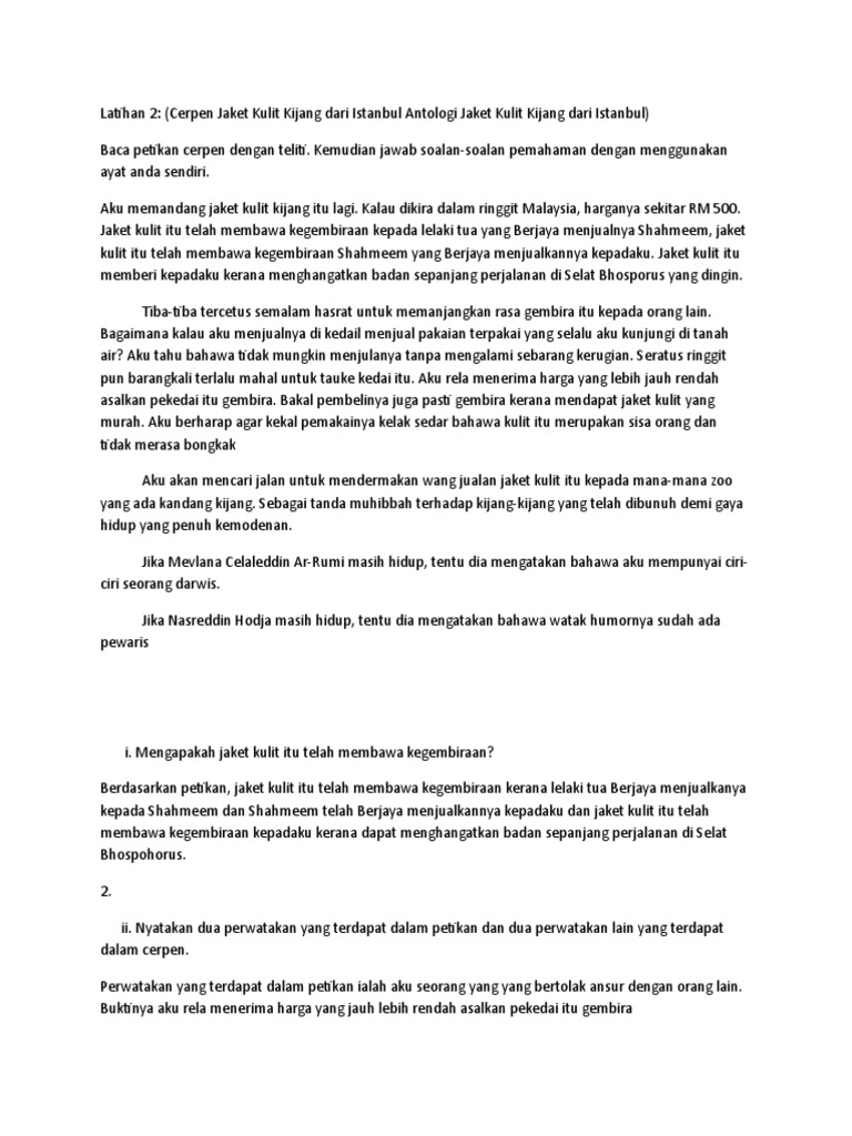 Mrsm tmfs cerpen jaket kulit kijang dari istanbul (group 5). Jaket kulit kijang itu telah membawa kegembiraan kepada lelaki tua kerana berjaya menjualnya kepada shahmeen. Mas akhirnya terbeli jaket kulit kijang walaupun langsung tidak berniat. Jual beli jaket terbaru 2021, tersedia berbagai pilihan jaket harga murah! Dia berkunjung ke grand bazzaar yang mempunyai 6000 buah kedai.